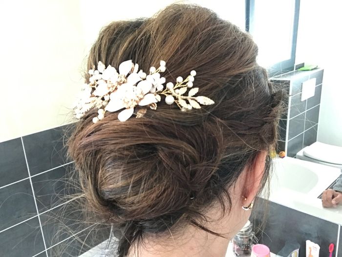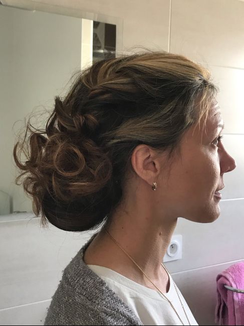 Bonjour, J'ai fait aujourd'hui mon essai coiffure. En réalité c'est le 2nd mais le 1er avec une autre coiffeuse ne m'avait pas du tout convaincu. Je voudrais avoir vos avis. Je vous mets aussi ma robe de dos. Merci beaucoup