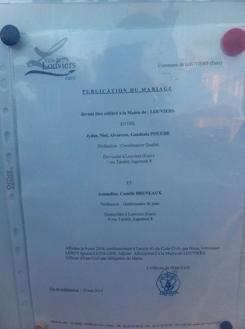 Saluts les filles, Savez vous quand est ce que sont affichés les bans de mariage a la mairie?