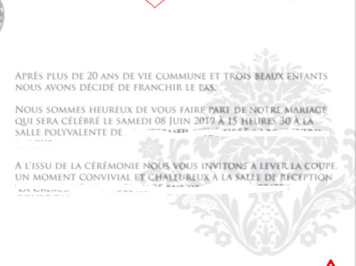 bonjour, je me marie le 8 juin et je dois faire les faire part oui oui je vous confirme que je suis en retard mais c'est ma moitie il a fait sa demande a noel puis à décider qu'on se mari avant cet été. je n'arrive pas à bien formuler ma dernière...
