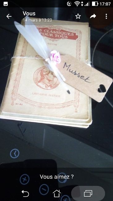 Réalisé avec de vieux livres de poésie. Le nom des tables des noms de poètes romantiques.