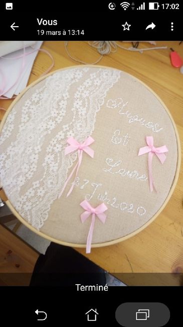 Bonjour la communauté ! Voila je vous partage notre tambourin brodé pour porter nos alliances à l’eglise ... so cute ❤️
