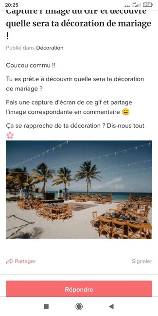 Coucou commu !! Tu es prêt.e à découvrir quelle sera ta décoration de mariage ? Fais une capture d'écran de ce gif et partage l'image correspondante en commentaire 😊 Ça se rapproche de ta décoration ? Dis-nous tout 🌸
