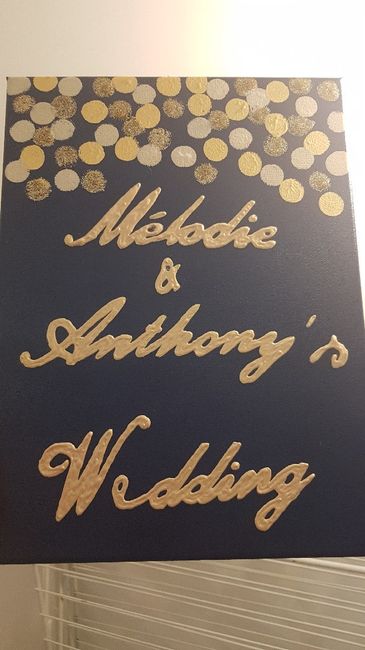 Coucou les filles! Aujourd'hui j'ai attaqué la toile "Mélodie and Anthony's wedding" que je mettrais sur une table à l'entrée de la salle de réception. Je suis un peu déçu de l'écriture, je l'ai faite avec un stylo relief et je trouve que c'est...