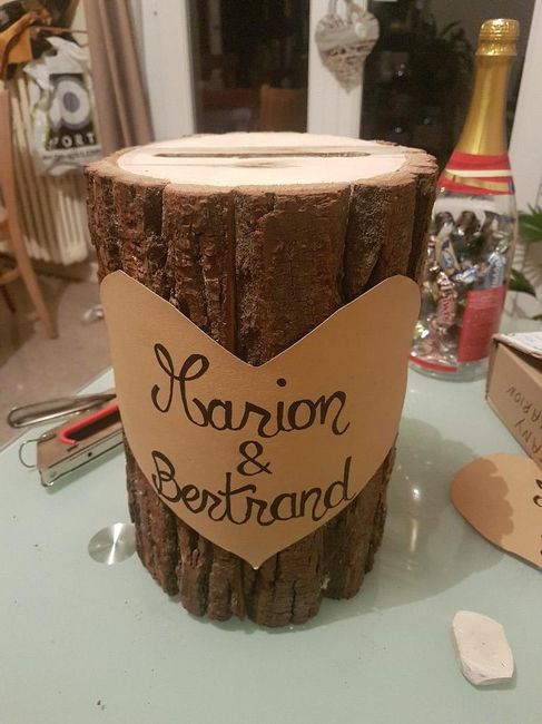 Salut les filles, Je vous montre l'urne qu'on a fabriquée. Le coeur est en carton car il est compliqué de graver dans le bois (je pyrograve d'habitude). Le coeur me parait "vide". Que me conseillerez vous pour l'agrementer? Ou le laisser tel quel......