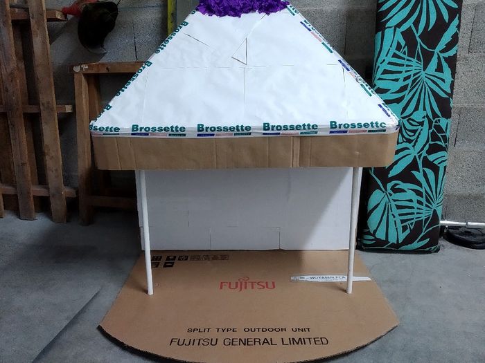 Bonjour, nous voulons finir notre Candy bar, on a déjà le carton en demi cercle où il est posé sur le nope blanche ainsi que le fond rectangulaire (là où il y a les 3 bandes rose et verte) et là on galère pas mal pour fabriquer le toit, est ce que ça...