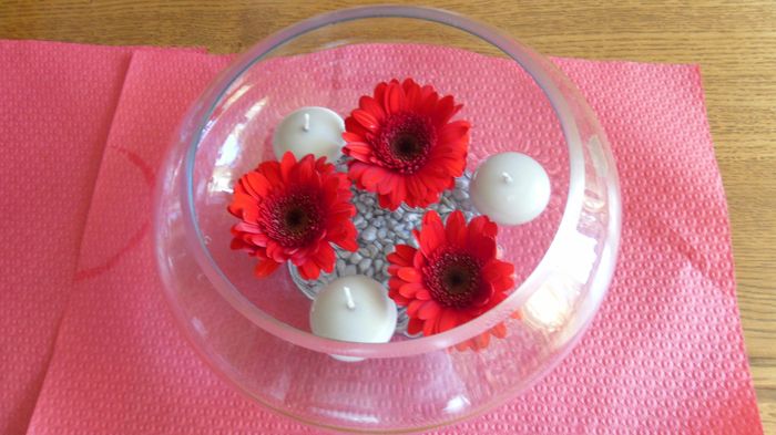 bonjour, est-ce quelqu'un peut me donner son avis sur mon centre de table?j'ai fait un test ce week-end .Ce sont des fleurs naturelles.C'est assez simple mais je voulais quelque chose de pas trop cher.Merci d'avance.