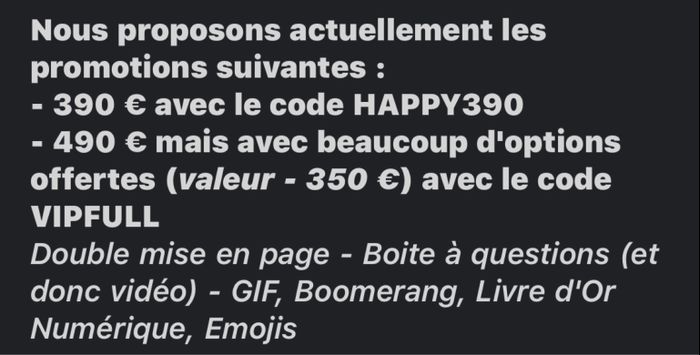 Bonsoir Je voudrais un photobooth pour mon mariage, que j'appellerai certainement "coin photos" j'ai reçu deux devis de deux prestataires différents. Est-ce que vous connaissez un prestataire? Merci de votre aide. Elodie