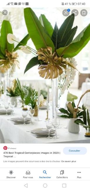 Cc les marie(es) et futurs marie(es). Lol J'aimerais savoir qui envisage le thème tropical chic pour son mariage. Et qu'elle sont vos idées deco !