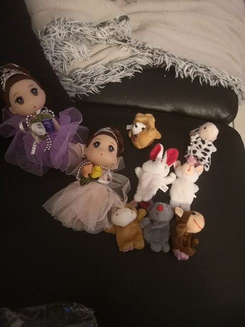 Coucou je vous présente mes cadeaux invités pour les petites fille de moins de 12 ans. Il s agit d une poupée mariée et d une peluche marionette. Chaque enfant en aura une ils pourront s amuser ensemble comme ça. Pour les petits garçon ce sera...