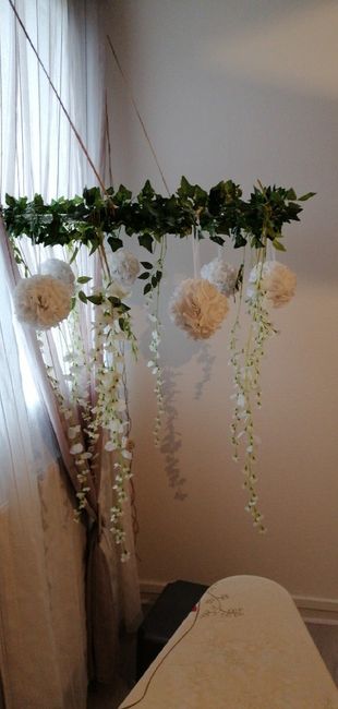 Coucou les futurs mariés ! Dimanche pluvieux, cheri au travail donc on s occupe, aujourd'hui cerceau pour accrocher au plafond, qu'en pensez vous ? Les avis sont mitigés entre sans glycines (fleurs qui descends) et avec glycines du coup je suis...