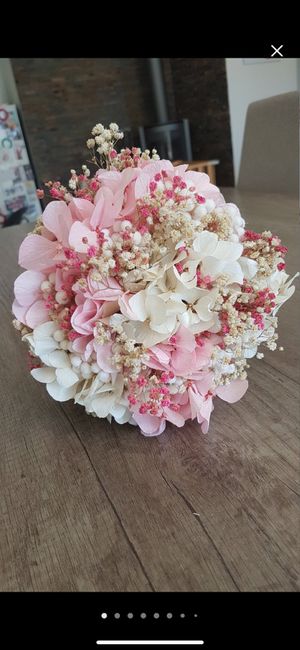 Voilà je vous fait voir ma MERVEILLE 😍 je suis amoureuse !!! Bouquet en hortensias blanc et gypsophile blanc stabiliser et la boutonnière ♥️♥️♥️