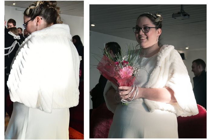 Hello la commu. A 1 mois du mariage j'ai galèrer a trouver un accessoire chaud pour mes epaules frileuses... Apres avoir acheté 3 machins en fourures j'ai finalement opter pour un chale en laine. Que je trouve plus élégant. Qu'en pensez vous ? La...