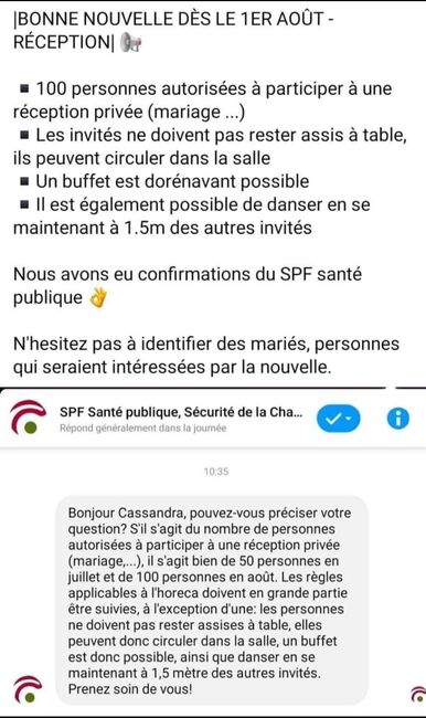 Hello les filles ! Pour celles qui organisent leurs mariages en Belgique, aujourd’hui à lieu un nouveau Conseil national de sécurité, où ils vont évoquer les mariages ! 🤞🏻🤞🏻