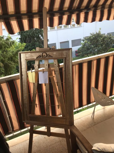 Cc les FM Aujourd’hui deco du plan de table j’ai bombé en or un cadre que j’avais à la maison ainsi que le chevalet ! J’hésitais entre les cartonner en blanc ou or du coup ça sera blanc qu’en pensez vous ? Bon courage à toutes pour les...
