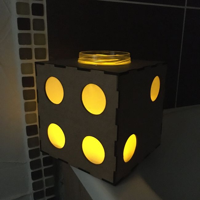Et la suite de la production/conception pendant le confinement, notre centre de table, le pot de confiture accueillera un bouquet. Il nous manque quelques gravures sur les faces du dé. Nous ne sommes pas encore fixés.