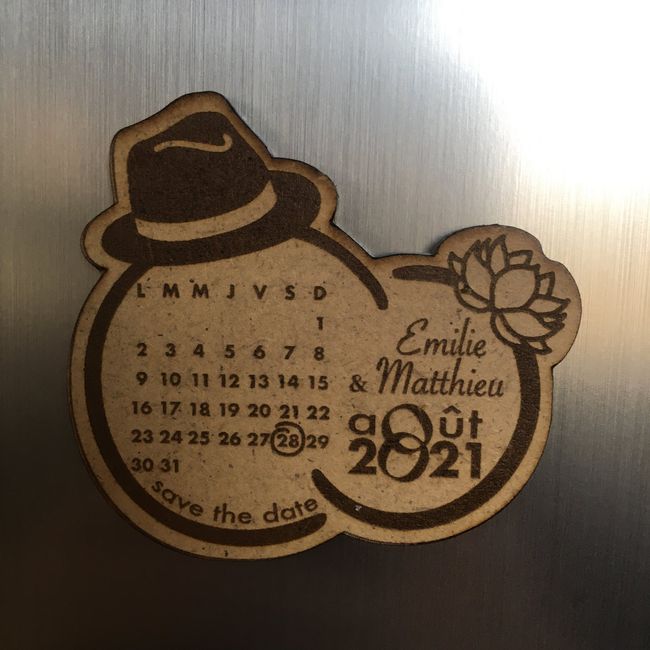 Coucou, Et voilà notre save the date prêt à être envoyé à l’impression dès que le confinement sera terminé. Nous collerons avec un petit double face notre aimant dessus. Qu’en pensez vous?