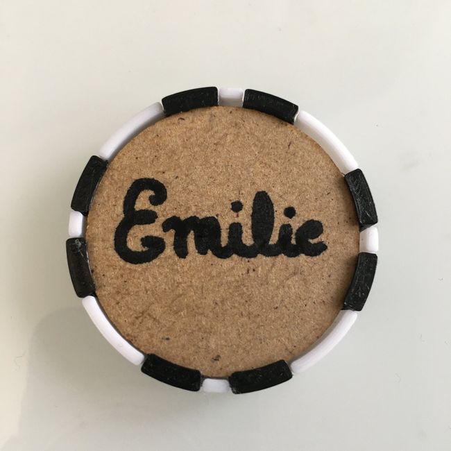 Bonsoir, Petit prototype en cours de réalisation: nous allons faire des portes clé pour le plan de table en forme de jeton de poker. D’un côté une face poker avec le numéro de la table et de l’autre en bois les prénoms seront gravés (là j’ai juste...