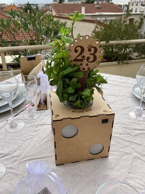 Bonsoir tout le monde! Cela faisait un moment que je n’étais pas venue. Voici notre essai de table du jour, évidement la vaisselle et nappage ne sont pas les bons 😂 Il manque encore des choses, les porte noms à graver, deux petits objets à coller sur...