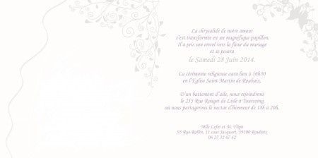 Bonjour ! J'ai remarqué qu'il existait des discussions pour partager nos faire-parts, mais pas ce qu'on écrivait dessus. Alors je vous propose de regrouper ici les textes que vous avez choisis de mettre sur vos faire-parts ! Voici le mien, sur le...