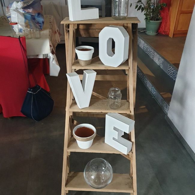 Bonjour a toutes 🙂 Je voulais partager avec vous mon petit essai deco pour l'escabeau. Pour celles qui avaient vu les lettres qu'on a fabriqué avec ma maman c'est la qu'elles trouvent leurs places. Il manquera juste a faire les bouquets pour mettre...