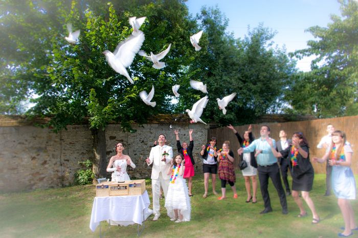coucou, Voilà une envie qui vient de me passer par la tête, un lacher de colombes à ola sortie de la mairie. Je viens de contacter un prestataire, voici ce qu'il me propose comme formule: * 2 colombes en panier d'osier à ouvrir + 2 colombes dans les...
