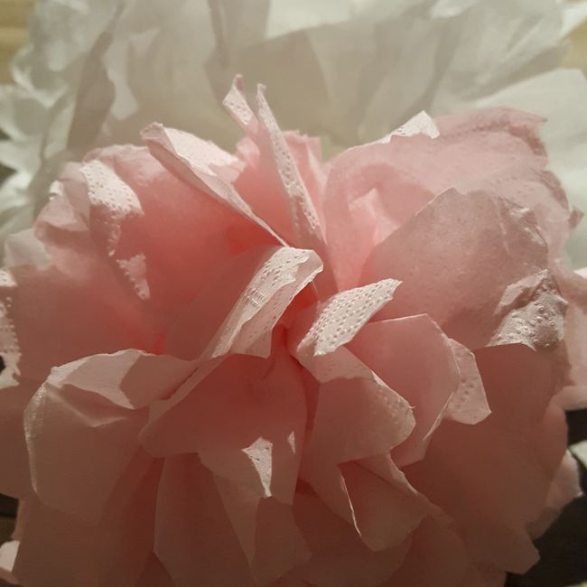 Bonjour, je vous présente ma fleur en papier (serviette), qui me servira pour décorer les tables, les chaises certainement aussi les chaises de cérémonie laïque et puis le vin d'honneur. Bref elle me servira pour tout.