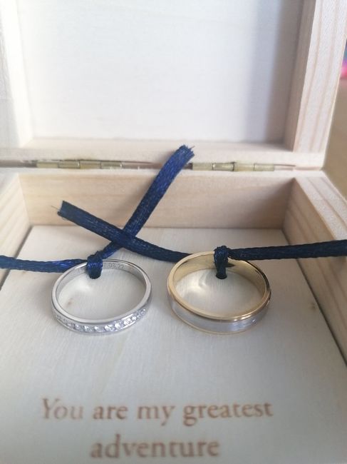 Comme son titre l'indique, nous avons la joie d'avoir reçu nos alliances à la bijouterie. Il a fallu les remettre à nos tailles, elles étaient un peu petites. Elles sont gravées avec le prénom de l'autre et la date du mariage. Heureusement que...