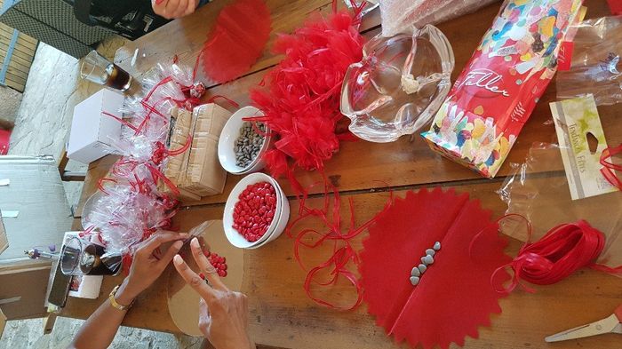 Les premiers pour les témoins et grandes demoiselle d'honneur et le rouge les petites demoiselle d'honneur