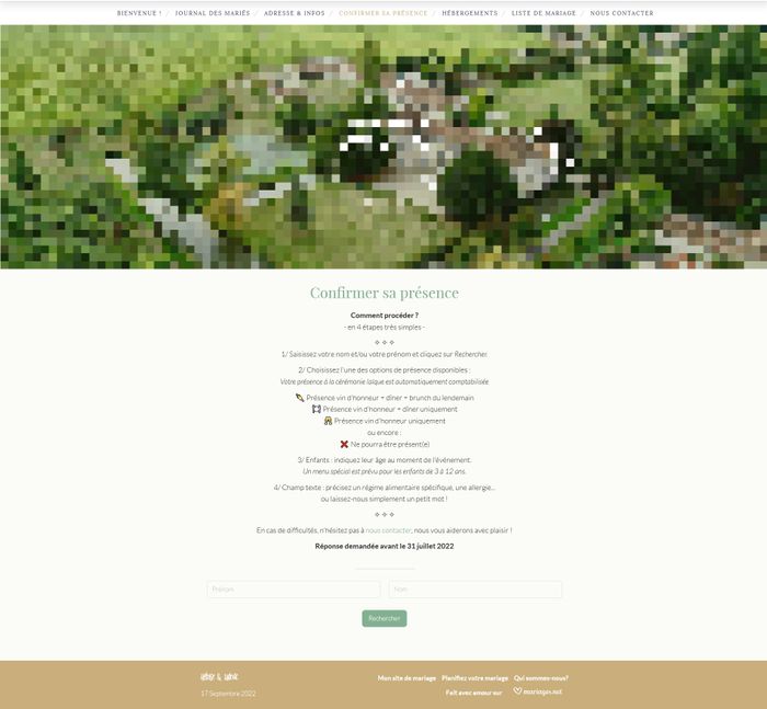 Bonjour à tous ! Je voudrais en savoir un peu plus sur le pack personnalisé à 69 euros pour créer son site ! Est-ce que cela permet aux invités de préciser s'ils seront présents au vin d'honneur, au dîner et/ou au brunch ou est-ce que ca leur permet...