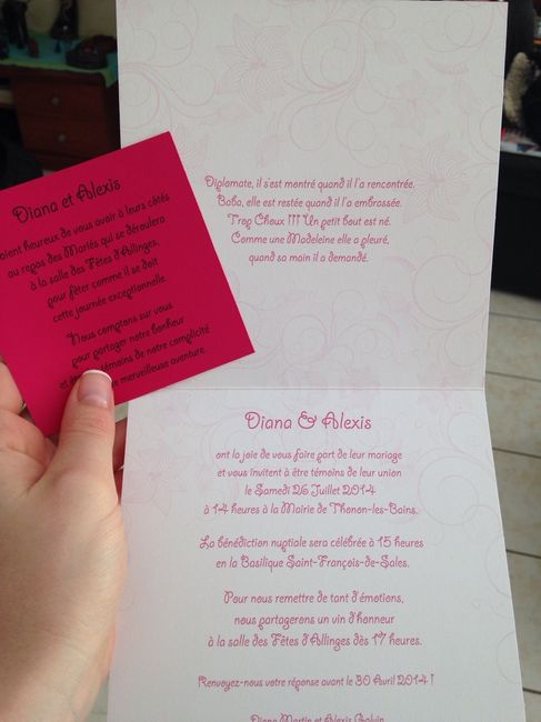 Salut à tous!! Par curisosité je me dermandais quel faire part avez vous choisi (photo)??? et quand on dit vos invités pour ceux et celles qui les ont déjà envoyés? Nous avons repéré un modele qui nous plait, simple et moderne...