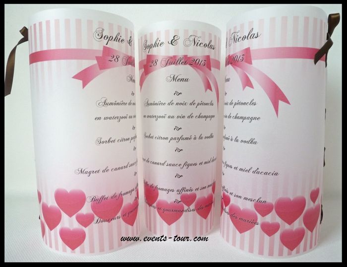 Coucou les filles, J'ai vu qu'il n'y avait pas de discussions à propos de la forme de nos menus et comment on va les présenter alors je propose de mettre vos idées dans cette discussion et pourquoi pas des photos. Par exemple Avez vous opté pour le...