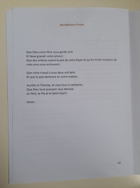 Bonjour voici ce que ma envoyé le prêtre vous mettriez quoi dans le livret je vous remercie d'avance de votre aide Mariage de ..... et ..... le 27 mai 2023En l’Eglise saint ..... Accueil : Procession d’entrée : Musique (orgue) ou chant pendant les...