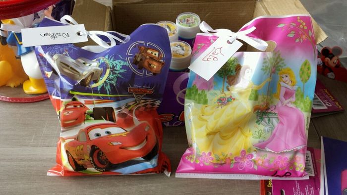 Salut tout le monde, Je suis en pleine confections des pochettes cadeaux que nous mettrons au enfants à leurs place à table. pour les garçons, tubes à bulles, une petite voiture et un petit avion. pour les filles, tubes à bulles, accessoires cheveux...