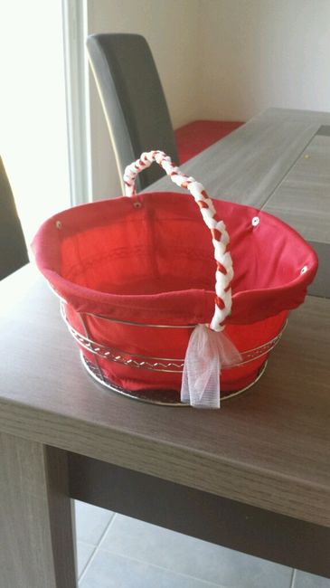 Voilà aujourd'hui j'ai acheté quelques bricole qu ils nous manqué pour finaliser la déco... et notamment les paniers pour présenter les dragées pour les gens du VH. et un panier (le rond) pour que ma témoin fasse la distribution de confettis à la...