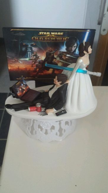 Hello les brides & grooms to be! J'avais vu une discussion sur les cakes toper. Je ne retrouve plus celui que je cherche. Il s'agit d'un cake toper humoristique ou la mariée vient chercher le marié geek devant son ordi. Sur l'écran il y a une...