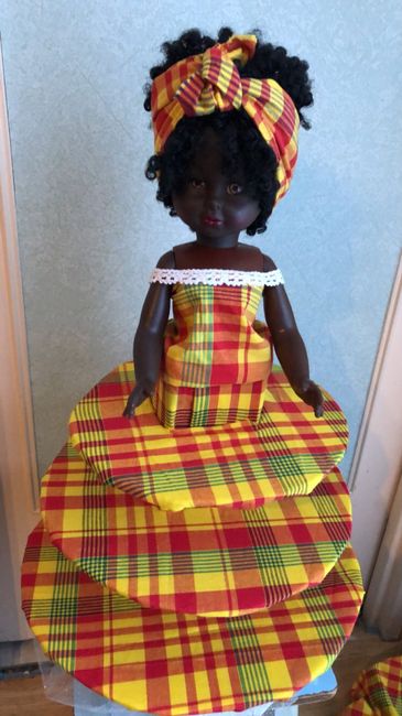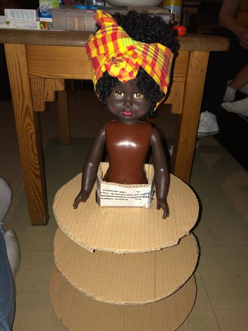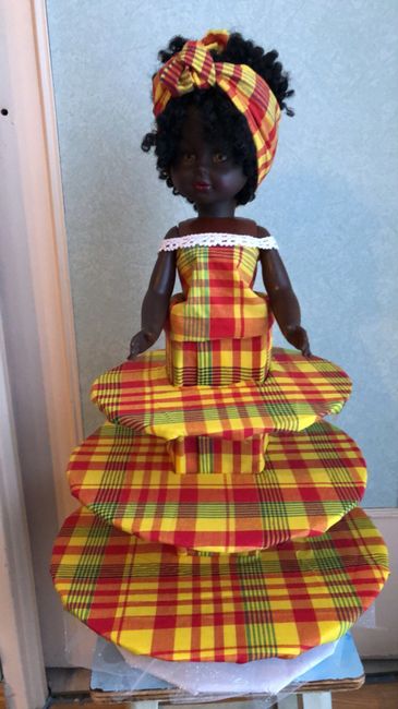 Coucou à tous 😀 voici mon support à dragées fait par mes petites mains casi fini mes dragées seront emballés dans du tulle blanc et poser sur les étage de la robe de ma poupée créole 😚voila je vous montre mes avancées