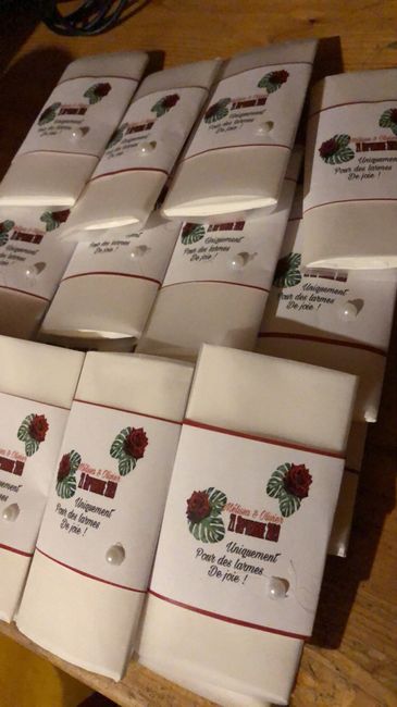 Voici ma deco faite maison sur nos verres et nos mouchoirs pour la mairie cela avance doucement ...là j’aimerai faire moi même le bouquet pour la voiture si vs avez des photos fait maison je suis preneuse 😀💪🏻