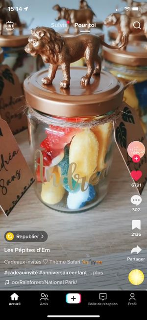 Vu sur tiktok ! Je n’arrive pas à mettre la vidéo … En gros animaux en plastique colle puis bombé j’adore l’idée ! Et transposable sur une thématique particulière de mariage Bref nous ne sommes pas partis là dessus mais je voulais vous partager ! ...