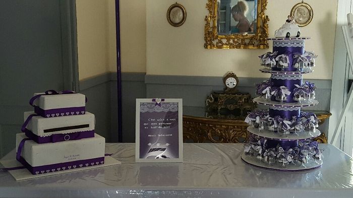 Ma soeur se mariant 15 jours après moi sommes en peins préparatifs de sa décoration. Voilà ce que ça donne.L'urne Le chemin de table rond Le centre de tableLe support dragéesEt les dragees