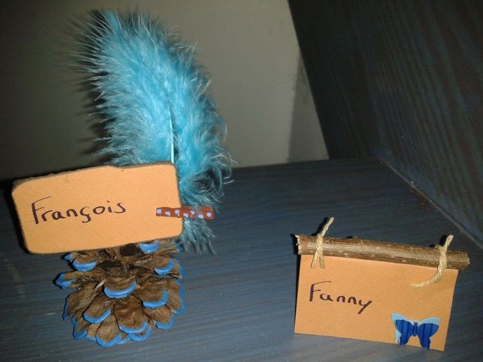 Voila a quoi ressemble mes marque place! marque place définitif les pommes de pins pour les hommes et les papillon-bois pour les femmes