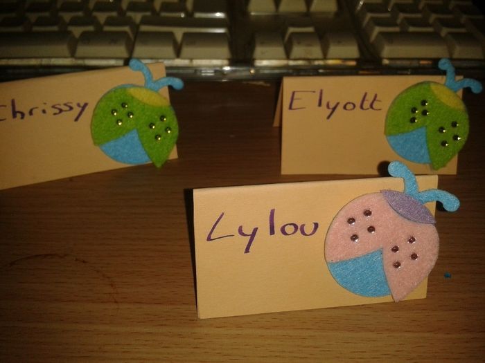 Alors voilà le support (fait par Chéri) support en bois et les noms le nom des table et deux ensembles l'ensemble! alors???