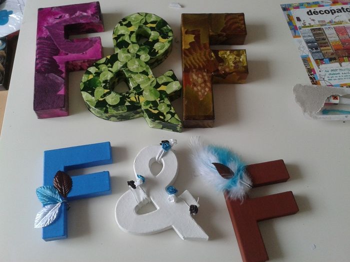 voilà ma déco! f&f!! l'un pour la table avec l'urne et livre d'or et l'autre pour la voiture