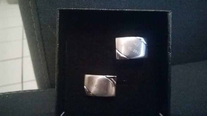 Ca y est, j'ai enfin reçu les boutons de manchette commandés pour mon chéri. Les inscriptions sont discrètes mais ils sont très sympas et surtout totalement assortis à la boucle de sa ceinture. J'ai hâte de les lui offrir!!