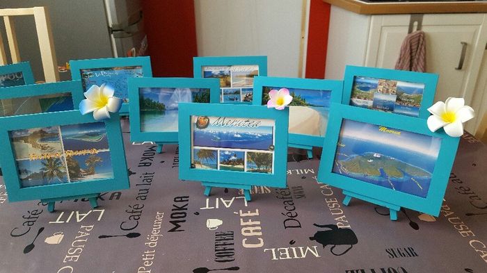 Journée productive. Voici nos photos de table. Les mêmes photos seront sur le plan de table. Il sera écrit "admirez votre vue pour trouver votre table". Le plan de table sur la planche n'est pas fini. LolIl serait temps de commencer la déco à 68...