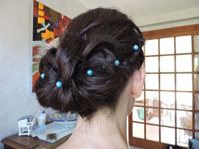 1er essayage chignon un peu "lâche" sur les 2 premières photos et un peu plus structuré sur les autres. Lequel préférez vous ?