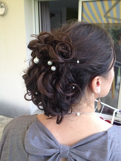 Salut, donnez moi vos avis. voici des photos de mon 2 ème essai coiffure.sur le côté droit ma coiffeuse (et amie) devrait me faire soit une tresse soit un canage. Les grosses perles blanches sont surtout là pour représenter l'endroit où je poserais...