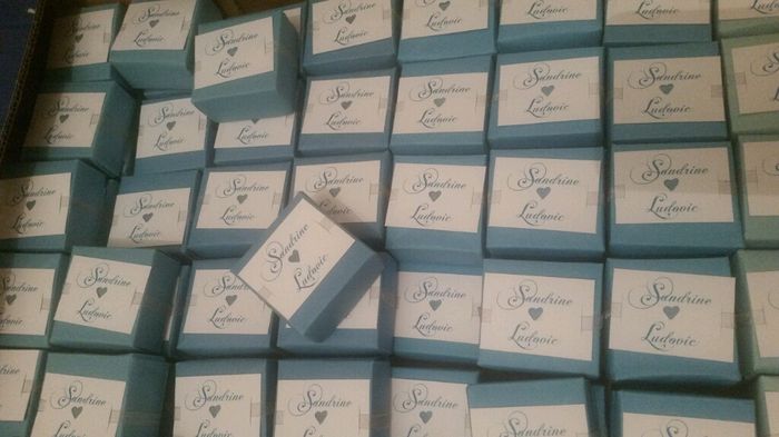 Hello les brides voici les 120 petites boiboites faites maison pour contenir les cadeaux de nos invités. Comme je suis d'origine polynésienne les boîtes contiennent un collier de coquillages. J'ai utilisé les mêmes étiquettes que celles de nos faire...
