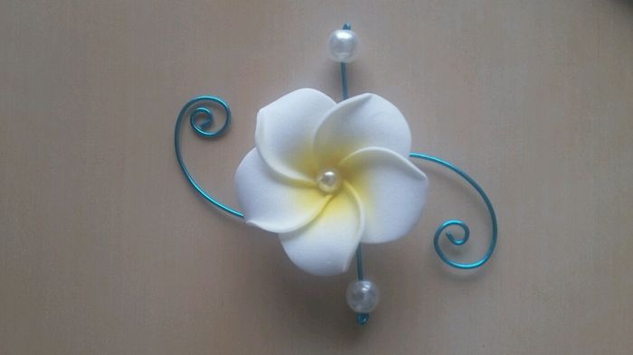 Salut tout le monde voici les bracelets que j'ai fabriqué pour mes demoiselles d'honneur,mes témoins et moi. J'aimerais en faire en version boutonnières pour les hommes mais je n'ai pas d'idées...aidez moi stp!