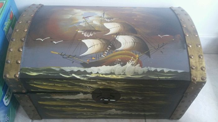 Et voilà après des essais chaotiques de décoration de boîte en carton nous avons opté pour un coffre