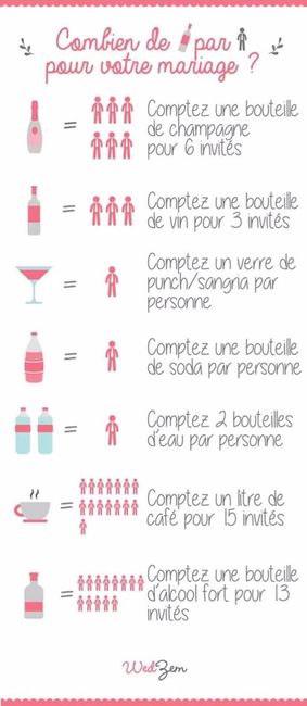 Petite trouvaille du jour ... Ça pourra en éclairer certaines j espère .. Perso j ai compté 1 bouteille de champagne pour 4 .. Mais ça donne un ordre d idée